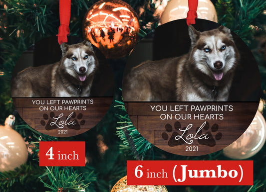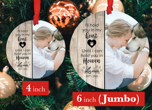 Personalized Pet Sympathy Gift - Christmas Photo Ornament - 4" or 6 (JUMBO)" - Personalized Christmas Ornament - Dog Memorial Photo