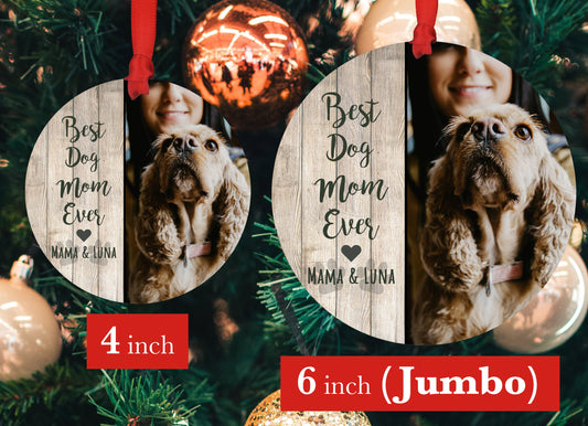 JUMBO - Personalized Best Dog Mom Ever - Christmas Photo Ornament - 4" or 6" - Christmas Ornament- Personalized Christmas Ornament