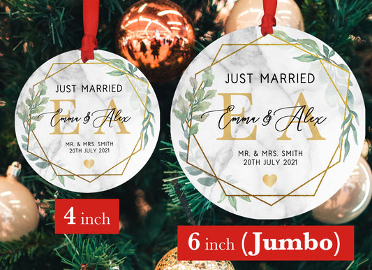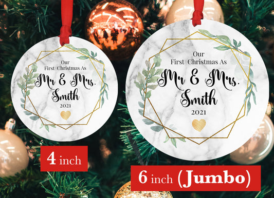 Personalized First Christmas Ornament - Custom Photo Ornament - 4" or 6" - Just Married - Our First Christmas As - Couple Wedding Gift