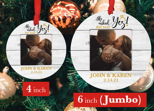 Personalized Engaged Ornament - Custom Photo Ornament - 4" or 6" - Christmas Ornament - Couple Wedding Gift - He Asked, He Said Yes!