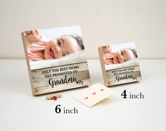 Personalized Gift for Grandma - 4" or 6" Photo Block - Only The Best Moms Get Promoted to Grandma Quote -Pregnancy Announcement Expecting