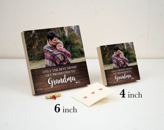 Personalized Gift for Grandma - 4" or 6" Photo Block - Pregnancy Announcement Expecting - Only The Best Moms Get Promoted to Grandma Quote
